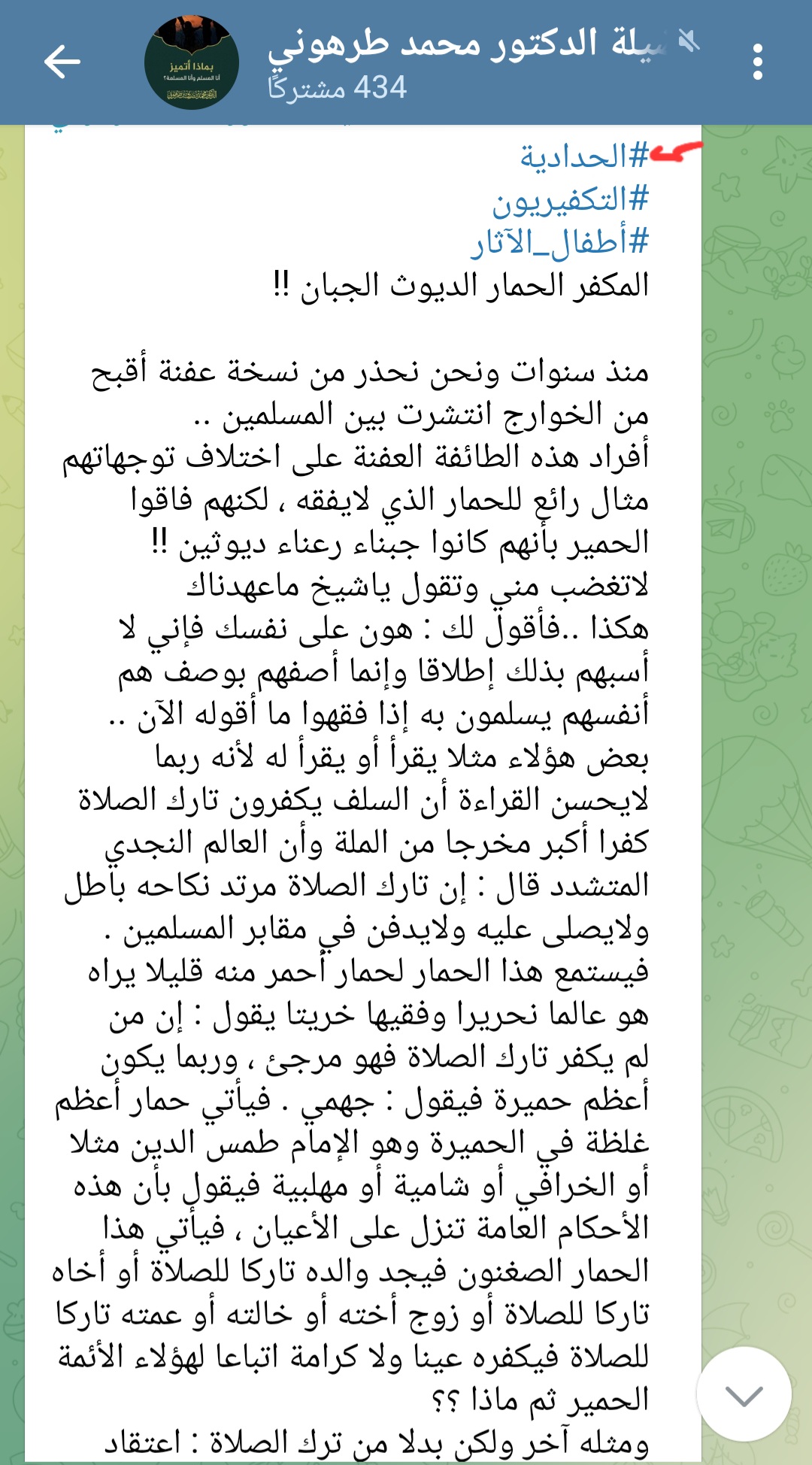 الطرهوني يصف “الحدادية” بأبناء الزنا ويصف كل من كفر تارك الصلاة عينًا بالحمار